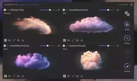 Hold a chord and hear it breathe. Moments: Vocal Clouds unfolds voices into shifting textures that move and bloom over time. Four independent layers let you shape immersive, rhythmic vocal landscapes from the simplest input. From gentle whispers to vast cinematic swells, you can create evolving soundscapes that feel alive, emotive, and uniquely yours.