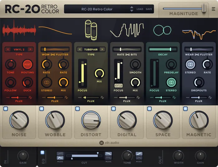 RC-20 Retro Color is a creative effects plugin that effortlessly recreates the atmosphere of vintage recording equipment. It brings life and texture to any recording and works perfectly in any modern production environment.